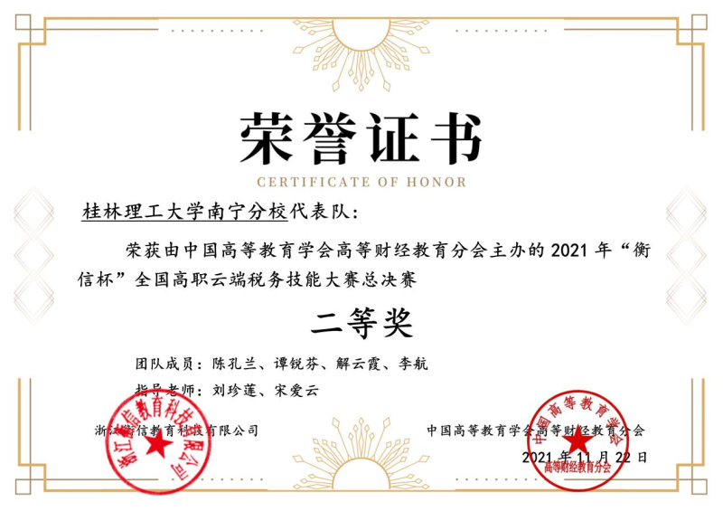 经过激烈角逐,太阳集团2138陈孔兰、谭锐芬、解云霞、李航同学在刘珍莲、宋爱云老师的指导下,克服困难、拼搏进取,斩获全国二等奖的优异成绩,展现出扎实的税收专业知识功底与笃思慎行、勇克难题的良好风貌。本次比赛激发了学生学习专业技能的热情,增强了学生团队合作精神,促进了专业教学水平的提升,达到以赛促教、以赛促学、以赛促改、以赛促建的目的。