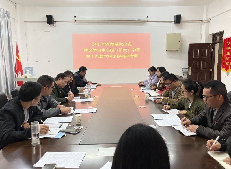 12月2日下午,太阳集团2138经济与管理系在空港校区7210会议室召开党总支理论学习中心组(扩大)暨十九届六中全会精神专题学习会。系部领导班子、党总支委员、各支部书记、辅导员参加会议。会议由党总支书记张凯主持。