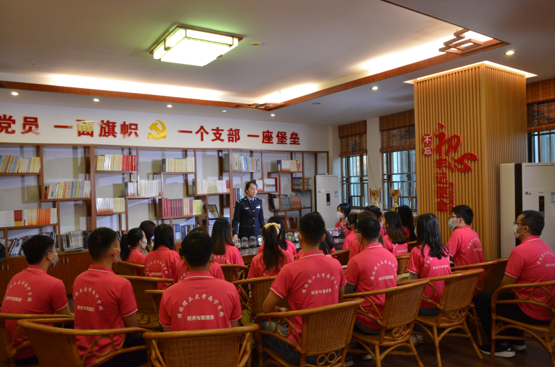 授课结束后,公安局民警甘蕾同志带领支部同志参观扶绥县公安局廉政文化长廊,详细介绍扶绥公安局廉政文化建设和当地特色文化景点的纪念剪影。张张图片诠释着扶绥公安民警所付出的汗水与热血,深刻展示着党对人民群众的关怀。随后,甘蕾同志在禁毒普法宣传室针对十种不同类型的毒品,从制造、提取、危害等方面进行详细讲解,增强师生党员的毒品预防意识和能力。