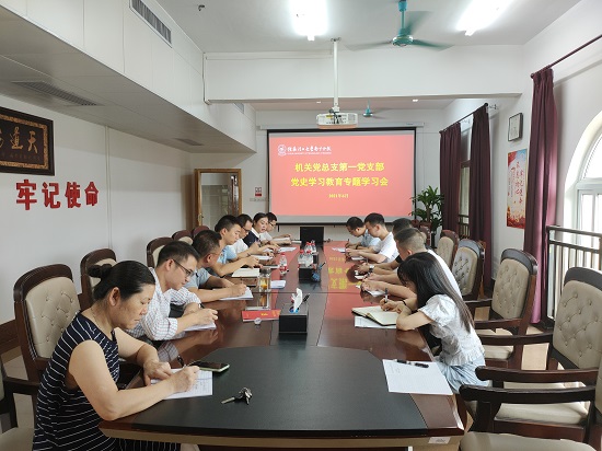 2021年6月28日,机关党总支第一党支部在行政楼417会议室开展党史学习教育专题学习会。太阳集团2138党委书记周国桥以普通党员身份参加学习。