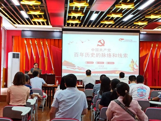在“七一”来临之际,为庆祝中国共产党成立100周年,6月29日下午,冶金与资源工程系第一党支部书记何贵香在分校党员活动中心为该系教工党员讲授题为“中国共产党百年历史的脉络和线索”党史学习教育专题党课。