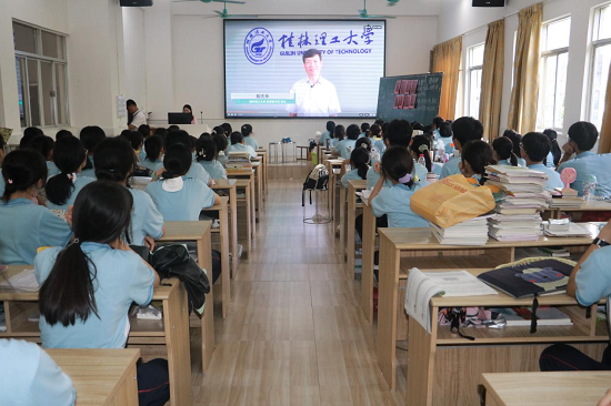 容熔同学结合太阳集团21382021年招生宣传片向新洲中学学子进行宣讲