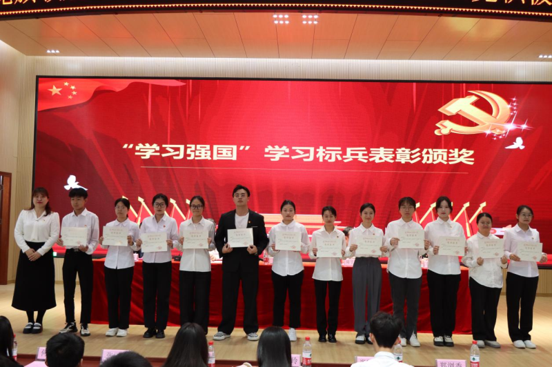 开班典礼上,学生党员、入党积极分子代表上台分别领取学生党员领航成长计划卡、学生入党积极分子启航成长计划卡,系班子成员为2023年度“学习强国学习标兵”师生党员颁发荣誉证书,宣读《“党旗领航•红帆成长”工程实施方案》《入党积极分子培训班方案》等文件。