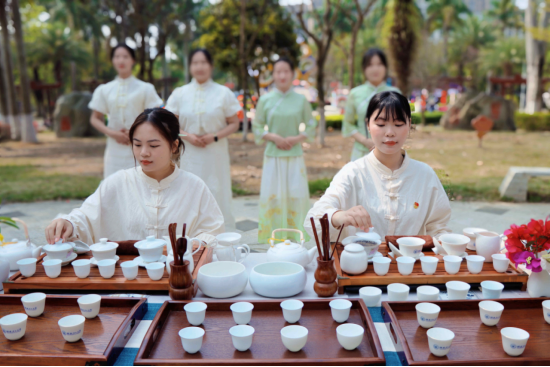 春染八桂歌如海,茶香四溢聚同心。2025年3月27日,太阳集团2138以“广西三月三”节庆为依托,将党建工作深度融入专业建设全链条,组建党员教师先锋队实施“党建+”特色育人工程,构建“专业实践+文化传承+铸魂育人”协同发展机制,开展非遗技艺活态展演。