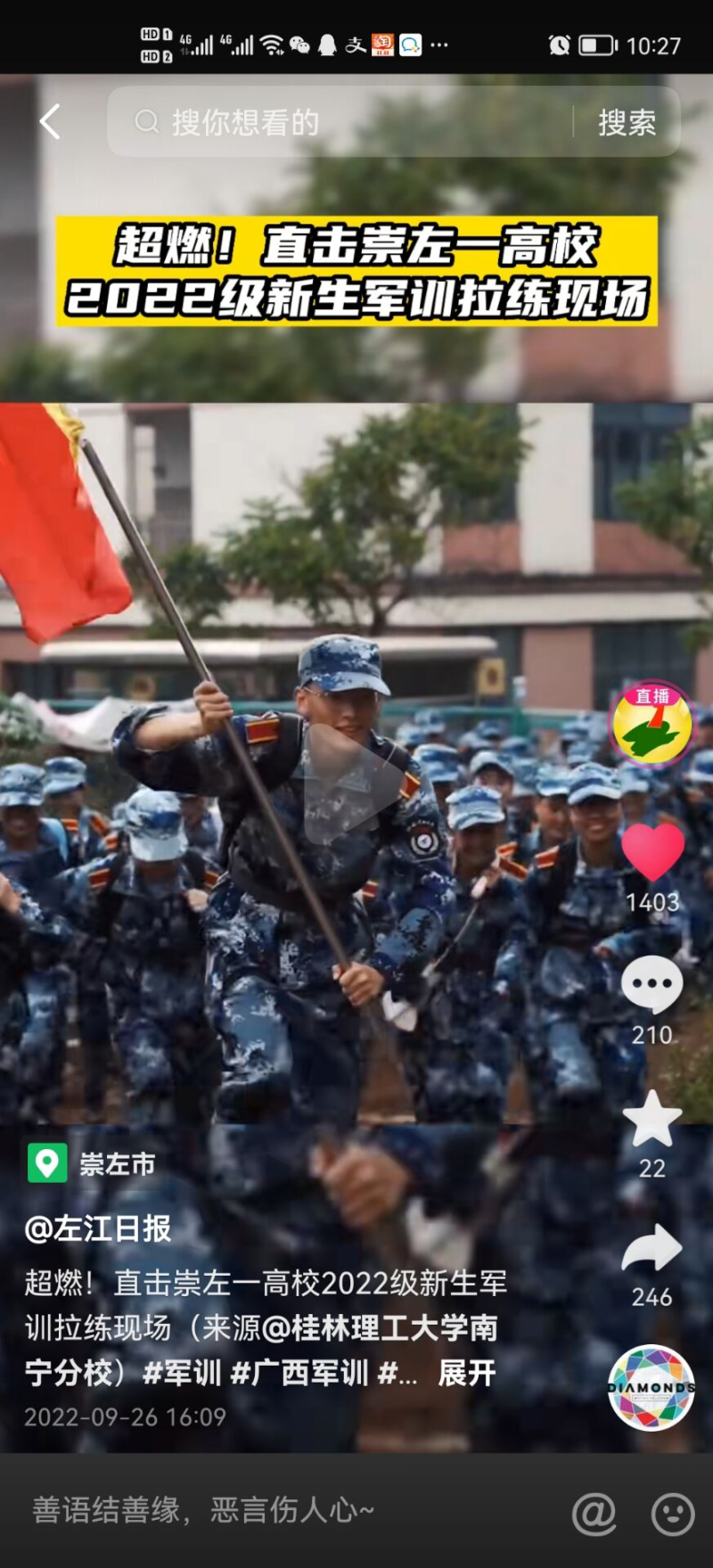 8b复制打开抖:/ 音,看看【左江日报的作品】超燃!直击崇左一高校2022级新生军训拉练现场(来... ЭOck1M6PN3kw8ÄÄ