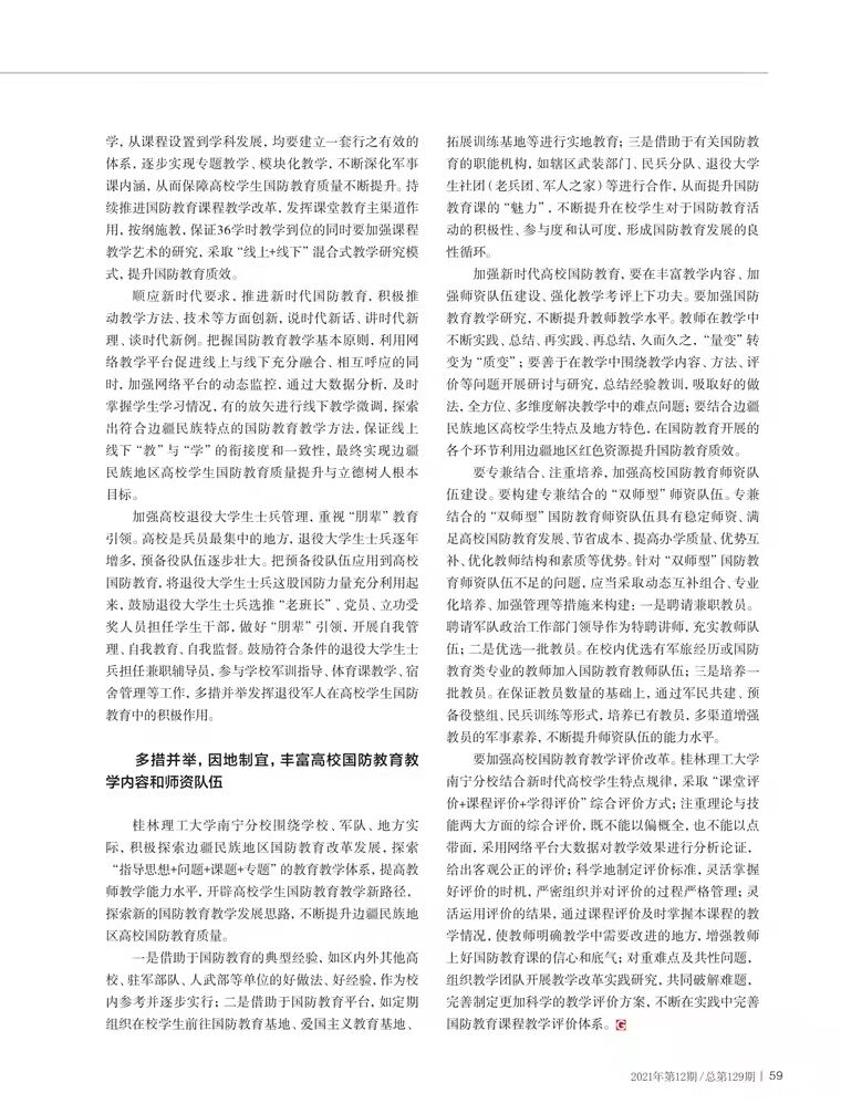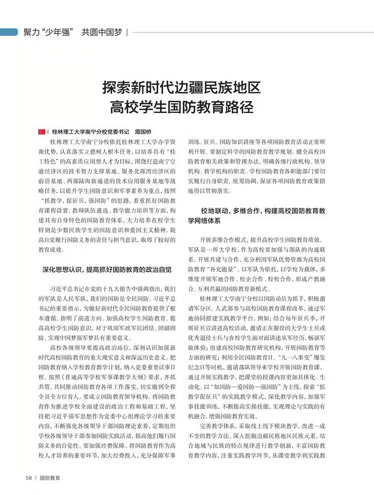 《国防教育》杂志刊发分校党委书记周国桥文章:探索新时代边疆民族地区高校学生国防教育路径