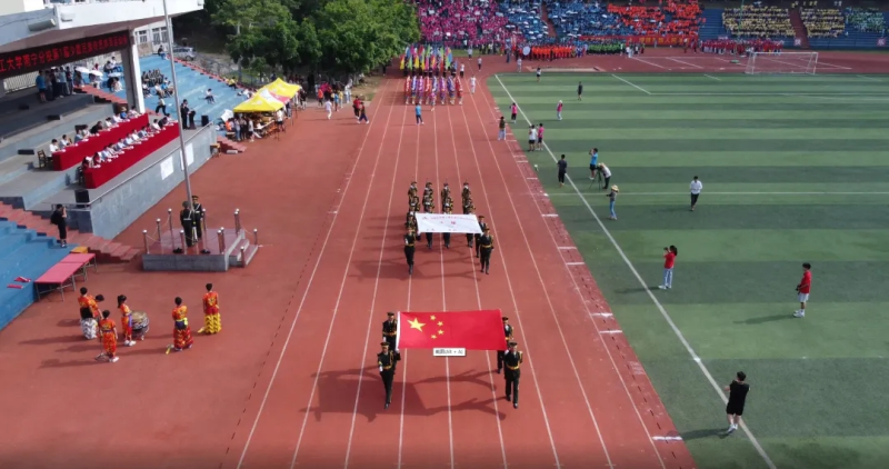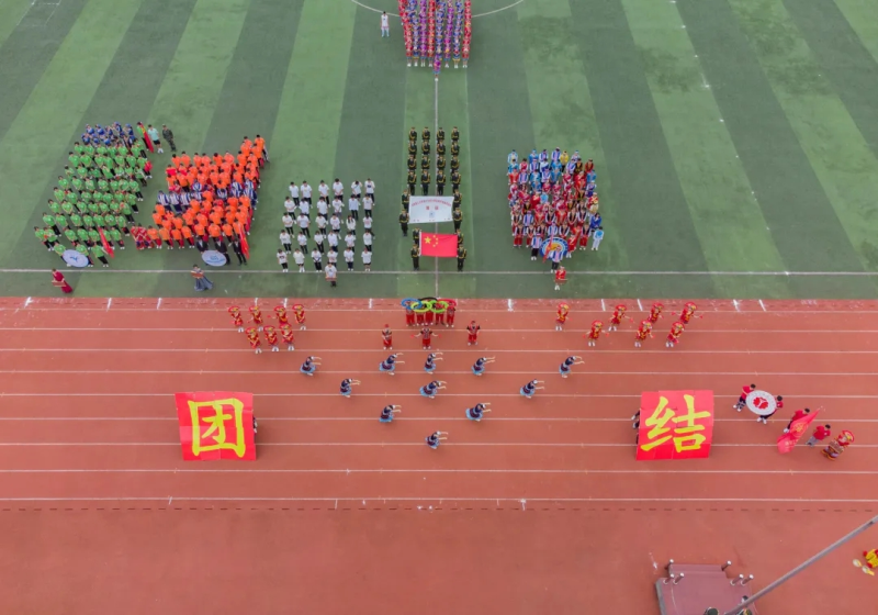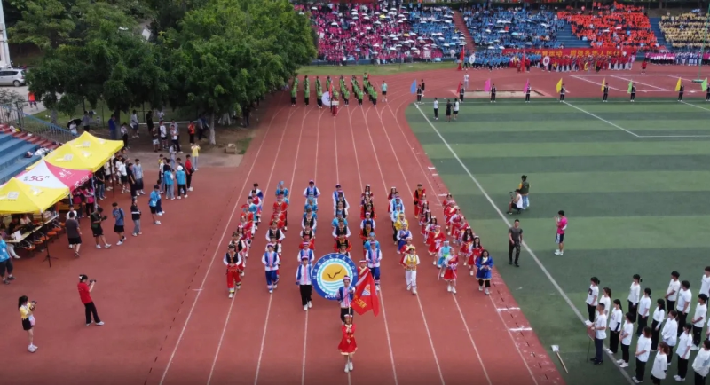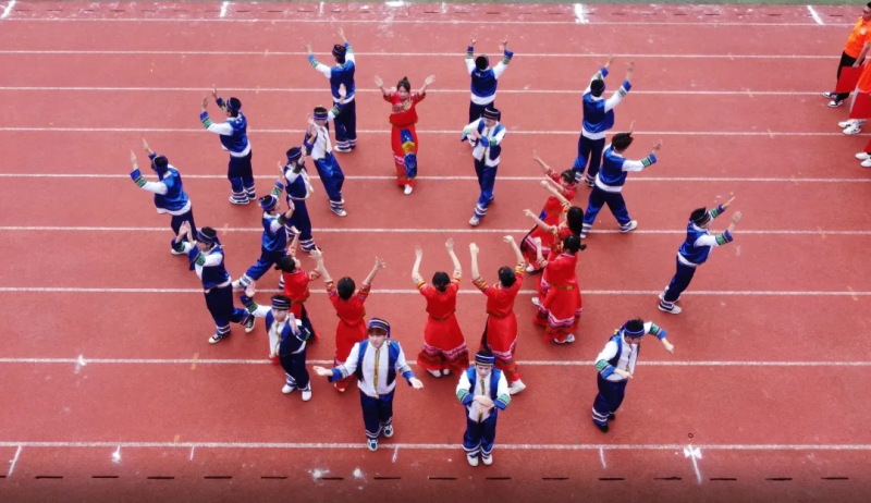 上午9时,在太阳集团2138的运动场上,红旗招展,激情昂扬,伴随着《运动员进行曲》的音乐,由各院系组成的10个代表方队依次走过主席台和观众席。英姿焕发的国旗护卫队最先入场,随后,伴随着响亮的口号,各方队身着少数民族传统服饰,手持花球和彩旗,以饱满的精神、昂扬的状态入场,用100周年的造型和党旗庆祝建党百年,还有各学院形式多样、热闹非凡的民族项目表演,为观众带来了视觉上的盛宴,赢得了现场阵阵掌声。最后,开幕式在200多位学子活力大气的团体健身操表演中落下帷幕。