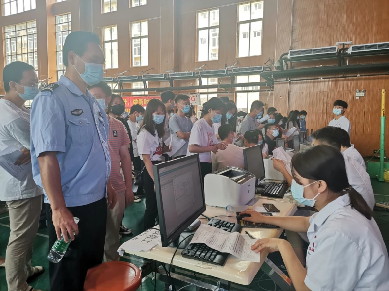 图为理工师生们排队填写、确认信息