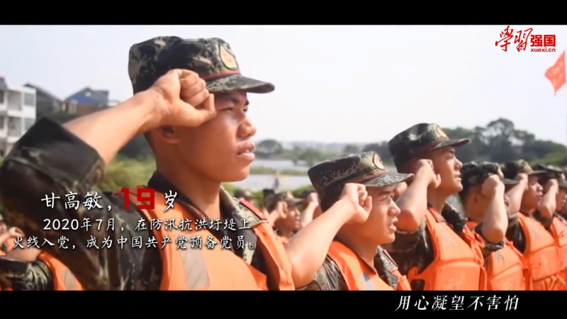 2020年7月,武警江西总队机动支队战士甘高敏冲锋在防汛抗洪一线,主动承担最重、最险的任务,冲在救援队伍的最前面,并与其他21名官兵一起利用休息间隙,在江西鄱阳江家岭村昌江圩堤旁参加入党宣誓仪式,光荣成为一名中共预备党员。