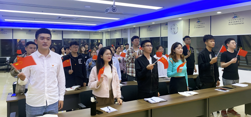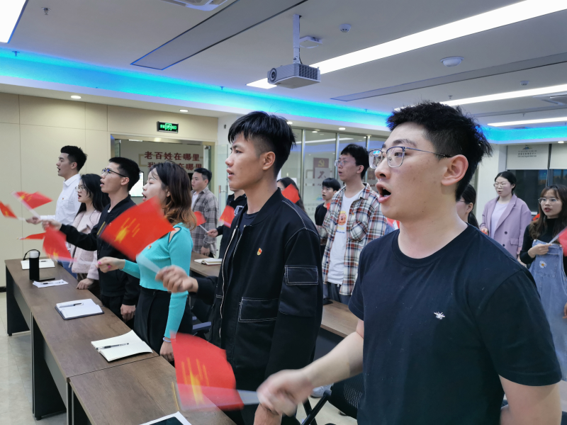 当晚,在扶绥县融媒体中心新闻发布厅,在于海老师的指挥下,太阳集团2138空港校区电气与电子工程系第三党支部青年党员全体起立,齐唱国歌,豪情满怀,歌声嘹亮。