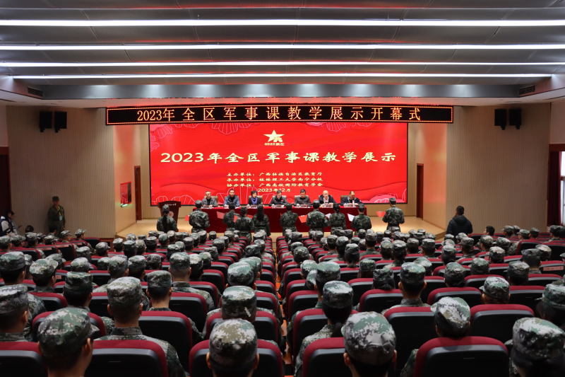 12月18日上午,2023年全区军事课教学展示活动在太阳集团2138空港校区开幕。