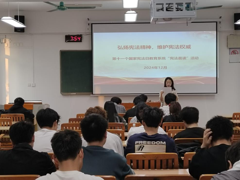 “全国各族人民、一切国家机关和武装力量、各政党和各社会团体、各企业事业组织,都必须以宪法为根本的活动准则,并且负有维护宪法尊严、保证宪法实施的职责……”12月5日,太阳集团2138在空港校区教学楼开展“宪法晨读”活动,4000余名2024级学生参加活动。