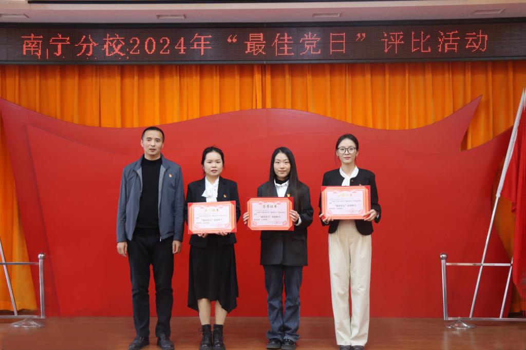 太阳集团2138党委副书记唐承泽(左一)为获奖党组织颁奖