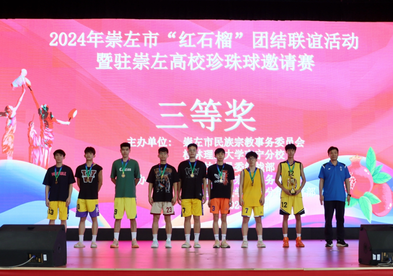 在同学们的热烈掌声和欢呼沸腾中,2024年崇左市“红石榴”团结联谊活动暨驻崇左高校珍珠球邀请赛胜利闭幕。