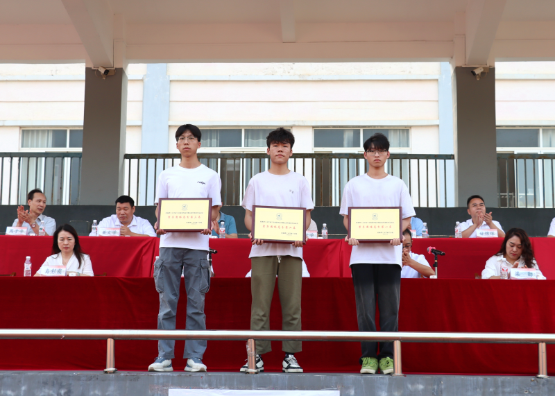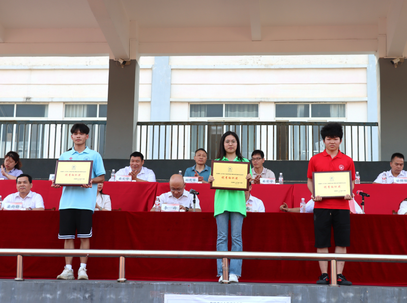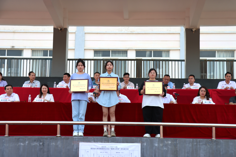 闭幕式上,民运会总裁判长黄远旺宣读了本届民动会比赛成绩。土木与测绘工程学院荣获团体总分第一名;土木与测绘工程学院、经济与管理学院、机械与控制工程学院获男子团体前三名;土木与测绘工程学院、经济与管理学院、冶金与资源工程学院获女子团体前三名;计算机应用学院、土木与测绘工程学院、机械与控制工程学院获“优秀组织奖”;冶金与资源工程学院、电气与电子工程学院、经济与管理学院获“精神文明奖”。主席台就坐领导为获奖集体颁奖。
