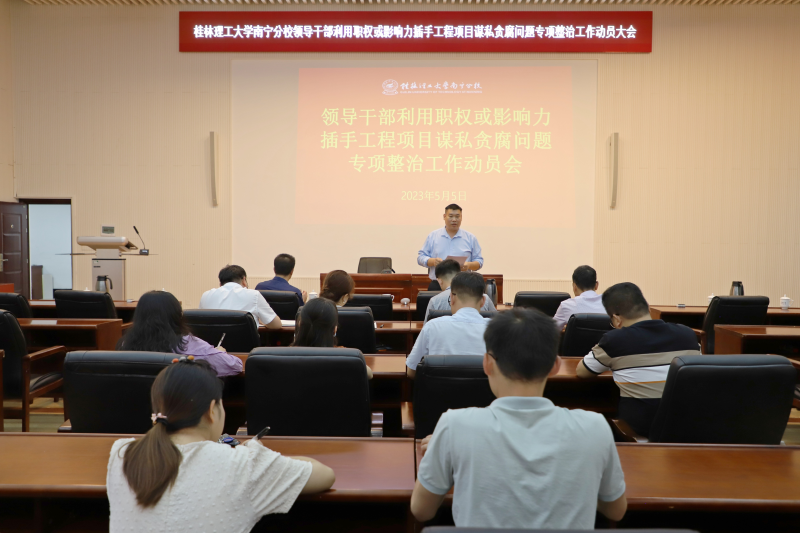 5月5日上午,太阳集团2138在空港校区行政楼图书馆报告厅召开领导干部利用职权或者影响力插手工程项目谋私贪腐问题专项整治工作动员会。会议由监察室负责人主持。
