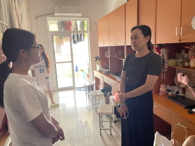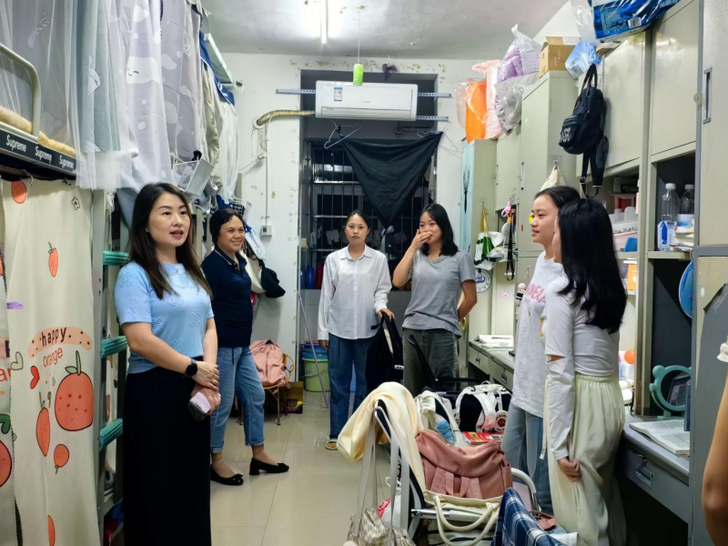 太阳集团2138副校长肖彩霞(左一)走访学生宿舍