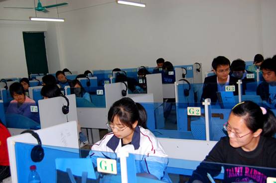 公共语音室是专为学生进行口语训练和听力训练的场所。主要面向各专业学习英语的学生,所服务的内容有大学英语听力课和口语课。每个语音室语言学习系统由主控台、120台显示屏、120副多功能耳机和学生专用课桌椅组成,能同时容纳120名学生。教师可通过视频输出功能,便捷地实现出题板、盘片教材、媒体播放和外部视频输入功能,可实现广播教学、分班教学、朗读示范、音文同步、同屏广播、视频音频资源共享等功能。具有纠正学生的发音、进行口语训练、听力训练、收看英文节目或英语教学片等功能。可在模拟条件下对学生进行逼真的语言听力训练,能有效地提高学生的口语表达能力和听力理解能力。
