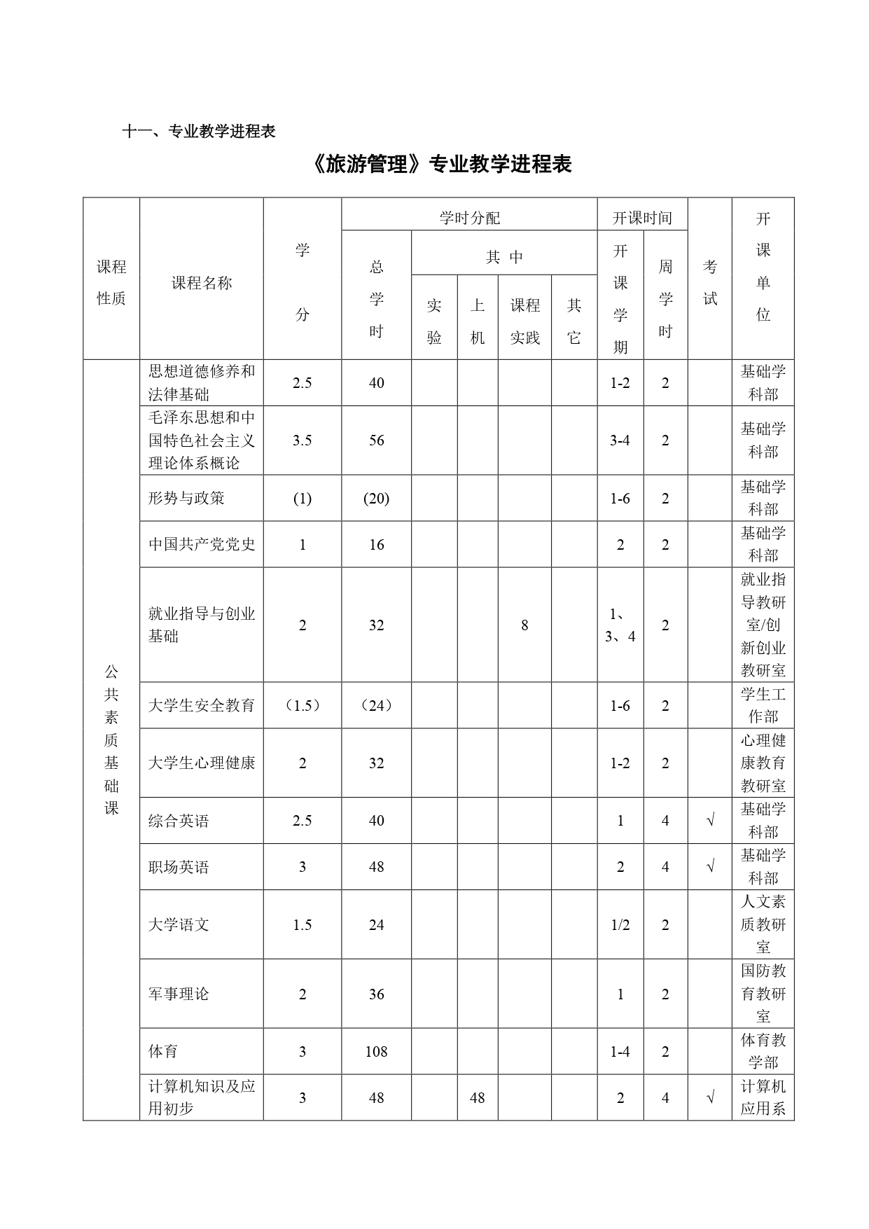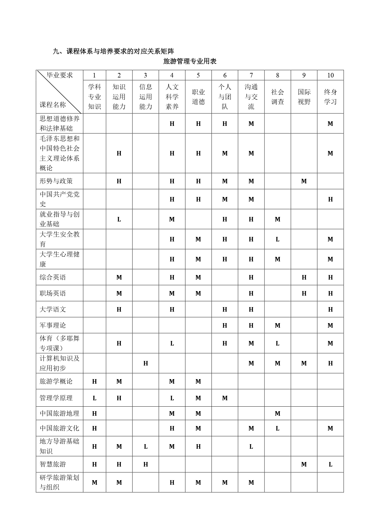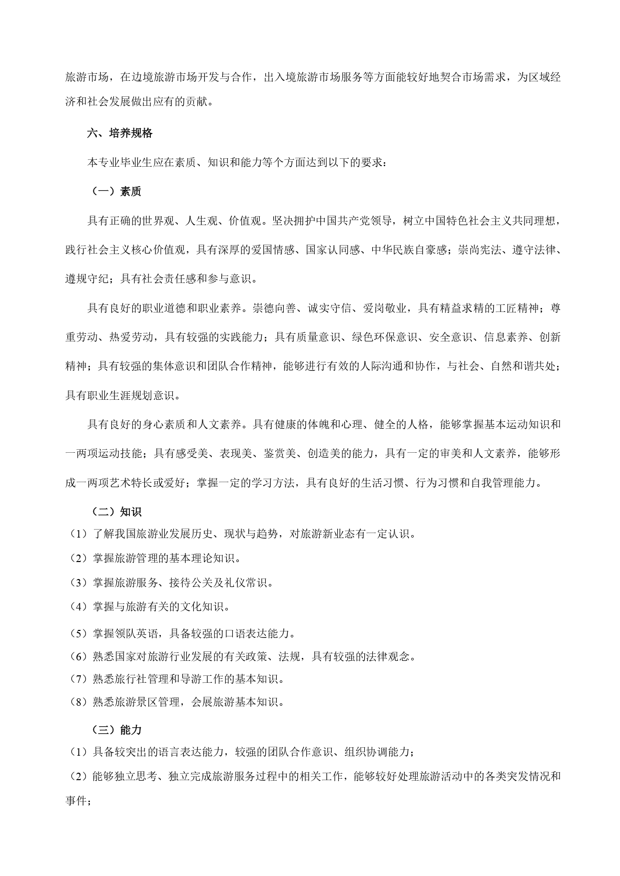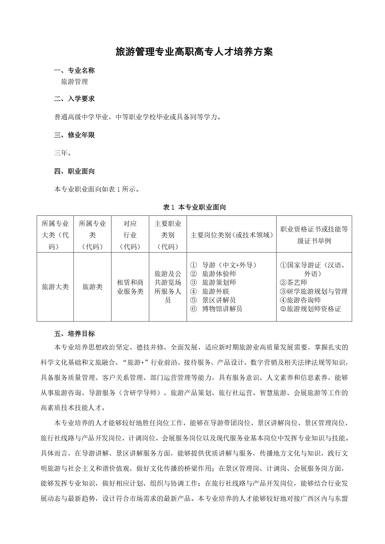 旅游管理专业高职高专人才培养方案