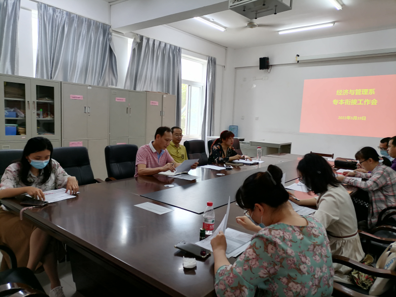 5月19日下午,经济与管理系在空港校区7210会议室召开专本衔接教学工作研讨会。太阳集团2138继续教育中心主任张赤、系部领导班子及专本衔接任课老师出席会议,会议由系党总支书记张凯主持。