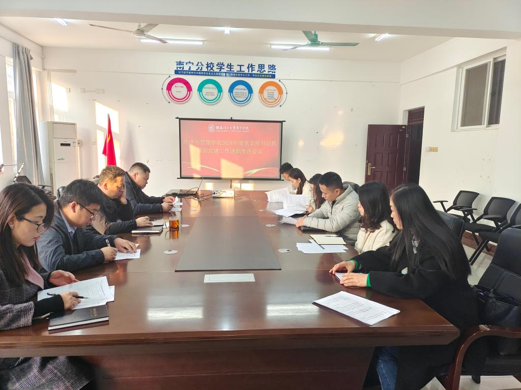 1月3日,经济与管理学院在空港校区7205会议室开展2024年度党支部书记抓基层党建工作述职考评会议。学院考评工作领导小组、党员群众代表、学生各党支部书记参加会议。