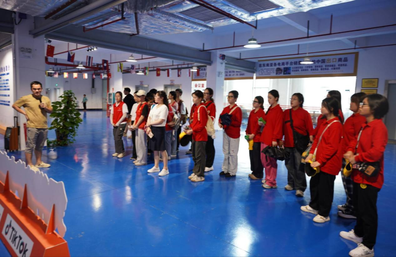 在当地负责人的带领下,志愿团来到凭祥市跨境电商直播基地,并认真聆听负责人介绍的基地具体情况,对电商产品的有了初步认识。