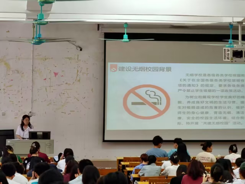 为展现我系学生的良好精神风貌,养成良好文明的生活习惯,提高学生对吸烟造成的危害的意识,我系辅导员通过成长成才课向同学们介绍了世界无烟日、吸烟的危害等知识,并印发倡议书,呼吁全体师生共同努力,树立良好的精神面貌,养成文明、洁净、优美的生活习惯,创造一个文明、健康的校园。