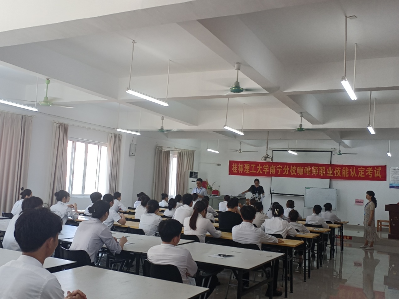 6月2日,经济与管理系开展中级咖啡师职业技能鉴定工作,酒店管理与数字化运营及会展经济与管理专业共37名学生参加鉴定考核,通过率达100%。广西经贸学院高级技师陈世敏、广西轻工技师学院高级技师施海燕、广西二轻技师学院高级技师吴斌等三位专家担任本次中级咖啡师职业技能鉴定质量考评员。