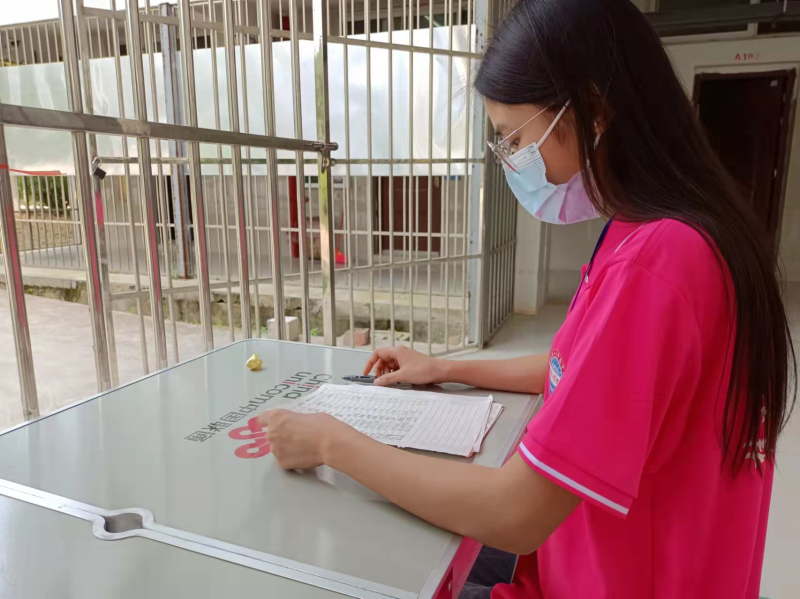 志愿者在教学楼值班