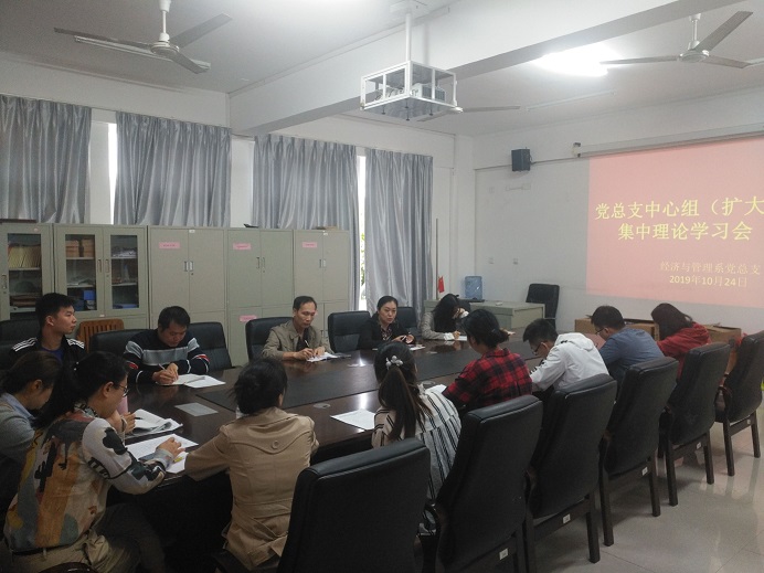 10月24日上午,经济与管理系在景明楼210会议室召开党总支党总支中心组(扩大)集中理论学习会。经济与管理系领导班子及该系各党支部书记、教研室主任参加会议,会议由该系党总支书记梁勤主持。