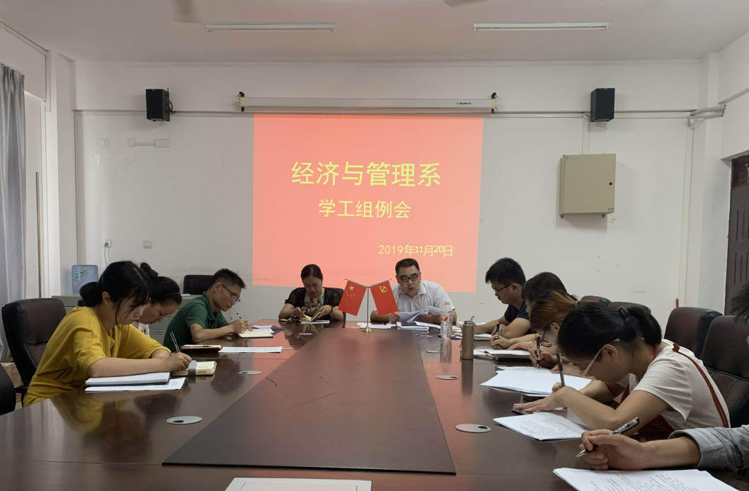 11月20日,经济与管理系学工组于7210会议室召开例会。党总支副书记兼学工组组长陈曙钰主持此会议,党总支书记梁勤和全体学工组人员参加此会议。