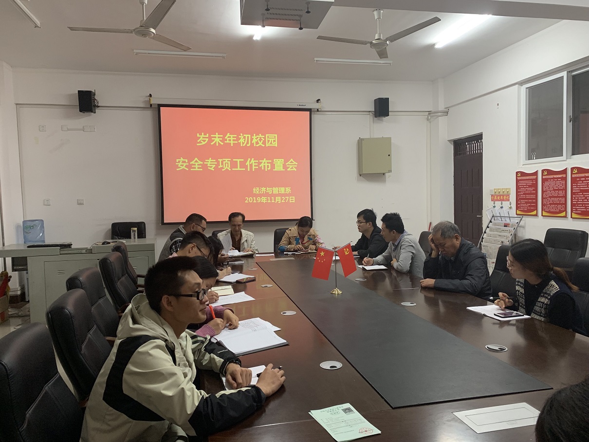 根据教育厅文件精神及学工系统会议工作要求,保障校园安全。11月26日,经济与管理系于7210会议室召开岁末年初校园安全专项工作布置会。此会议由党总支副书记兼学工组组长陈曙钰主持,周子平主任、党总支书记梁勤和全体学工组人员参会。