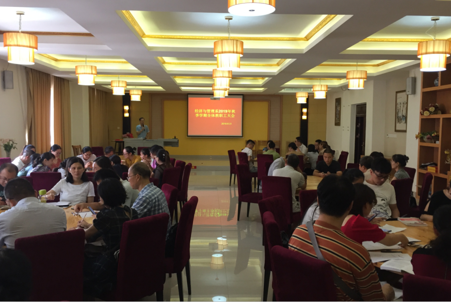 8月31日上午,经济与管理系在实训楼504室召开2019年秋季学期全体教职工大会,总结该系暑期工作的开展情况并安排2019年秋季新学期的工作,该系全体教职工参加了此次会议,会议由该系党总支书记梁勤主持。
