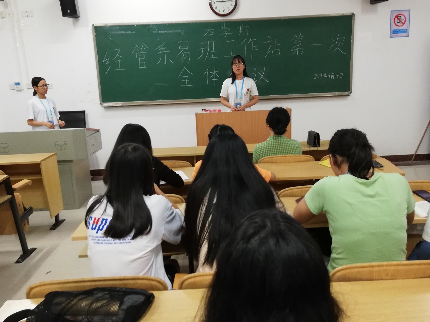 新学年,新风气,为了新学年更好的开展工作,2019年9月4日晚,经济与管理系易班工作站在2203教室举办本学期第一次全体会议。我系辅导员黄雯老师和全体易班工作人员参加了此次会议。