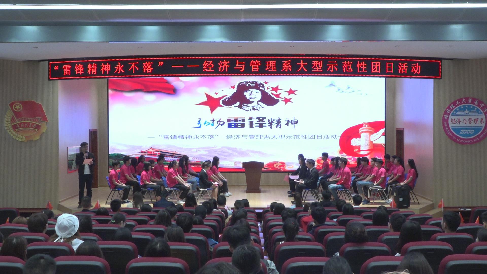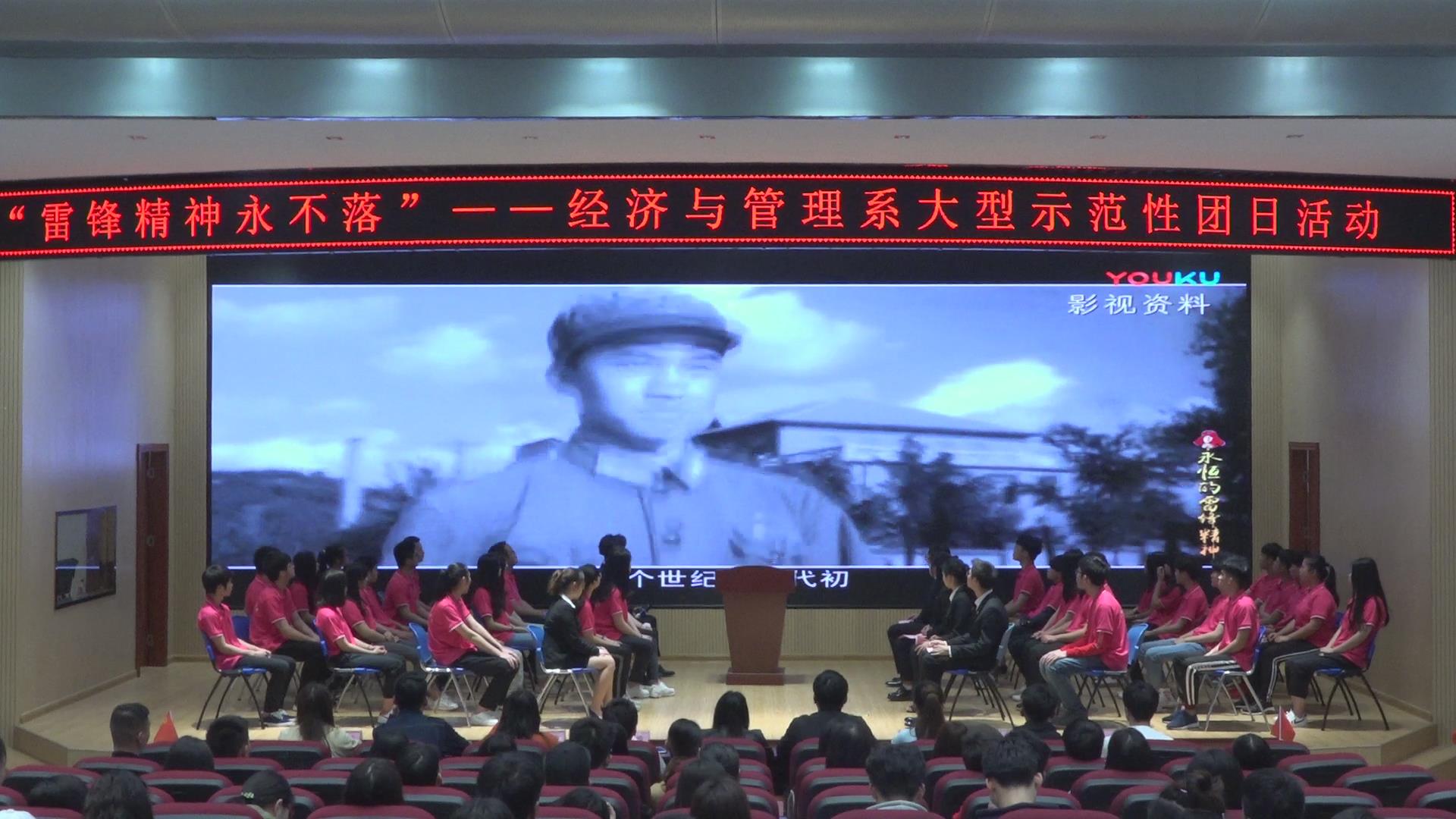 为了鼓舞同学们继承和发扬雷锋精神,引导广大青年学生将雷锋精神内化于心,外化于行,自觉的向先进看齐,3月12日下午,我系在启智楼8408报告厅成功举办了以“雷锋精神永不落”为主题的大型示范性团日活动。分校团委副书记谢欢、分校学生工作部副主任黄维、我系团总支书记范立添及各系团总支代表出席了本次活动,我系各学生团体负责人、各团支部干部参加了本次活动。本次示范性团日活动由我系团总支学生会和市营18-本1班团支部共同承办,团总支书记范立添老师主持活动。