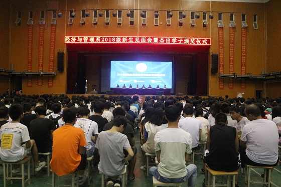 9月10日晚,太阳集团2138经济与管理系在体育馆举办2018级新生见面会暨“杰出学子”颁奖仪式。经管系主任周子平、副主任桑显洁、党总支书记梁勤、党总支副书记兼学工组组长陈曙钰、团总支书记范立添及18级辅导员、班主任代表出席本次活动,18级全体同学参加本次活动。