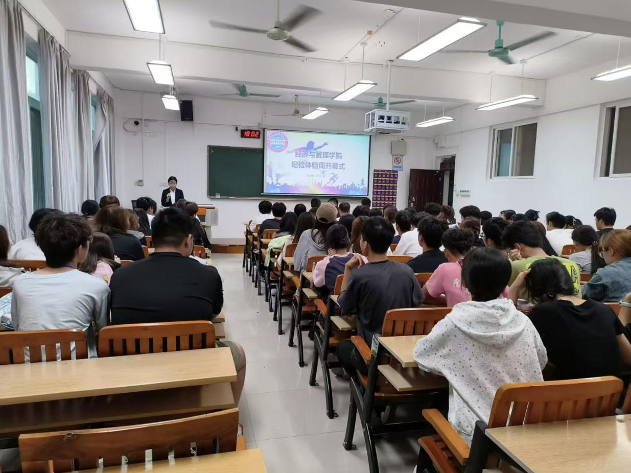 为进一步加强24级新生对学校规章制度和纪检部工作的了解,经济与管理学院于11月11日下午在上善楼1201举行“纪检体验周”开幕式活动。参与本次活动的有学院团委书记陆吉瑞老师,辅导员张坤老师、李伟老师和何珍珍老师,学生会主席潘翠松同学以及全体参加纪检体验周活动的同学。