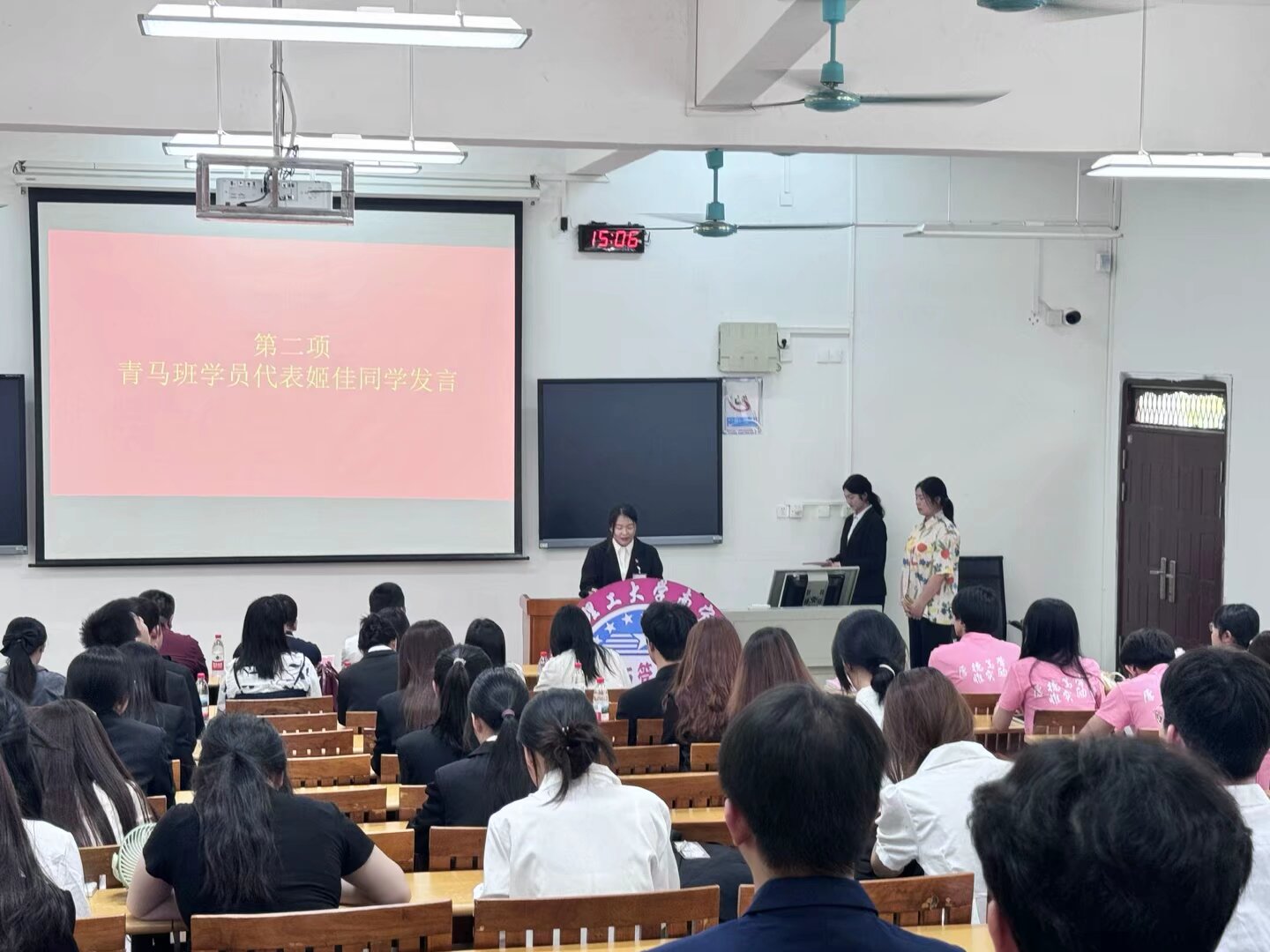 开班仪式在激昂的团歌声中拉开帷幕。“青马班”学员代表姬佳同学发言,表达了对“青马班”学习的期待与决心,立志在学习中提升自我,发挥先锋模范作用。陆吉瑞公布班委任职名单,明确班级管理团队与职责分工,为培训班有序运转奠定组织基础。方艳东宣读培训文件,明确学习要求与目标,强调学员要严守纪律,注重交流协作,高效完成培训任务。