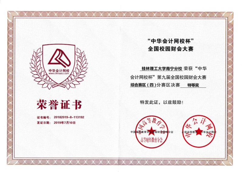 中华会计网校杯全国财会大赛综合赛区特等奖