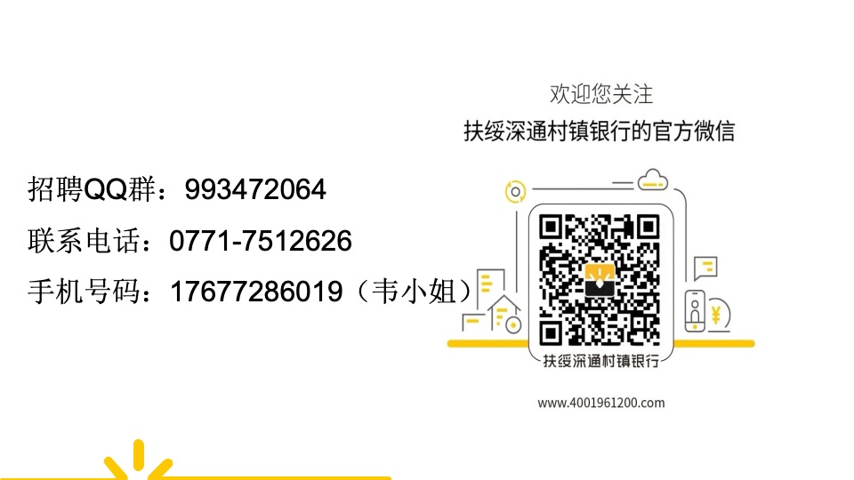 扶绥深通村镇银行成立于2012年2月18日,是经中国银行保险监督管理委员会广西监管局批准,由深圳农商银行作为主发起行发起设立的村镇银行。本行始终秉承发起行深圳农商银行"合规经营、稳健发展、守正笃行”的经营理念,以扎根扶绥本土发展为宗旨,坚持"支农支小支持县域’的原则,竭诚为扶绥本地企业、城乡居民提供专业、优质、高效的金融服务。本行设立总行办公室、营业部、业务发展部、松江支行、城南支行、东门支行、东罗支行。截至2023年6月末,发起行深圳农商银行总资产7000亿元,在英国《银行家》杂志2023年发布的“全球银行1000强”中排名第206名,ROE连年保持在同业较高水平。本行充分发挥小而快、小而活、小而精的优势,努力打造成为资本充足、服务优良、特色鲜明的村镇银行。