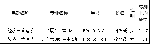 根据《太阳集团2138推荐优秀应届本科毕业生免试攻读硕士学位研究生工作管理办法》(桂理工研〔2021〕10号)和《关于做好经济与管理系推荐优秀应届本科毕业生免试攻读硕士学位研究生工作的预通知》文件要求,经济与管理系2024年推免生遴选工作领导小组研究决定,拟推荐会展经济与管理2020级本1班何汉湲、财务管理2020级本2班徐丽露参加分校2024年优秀本科毕业生免试攻读硕士学位研究生评选。现将系部申请学生的综合成绩情况公示如下,公示期为2023年9月11日至2023年9月13日,共3天。