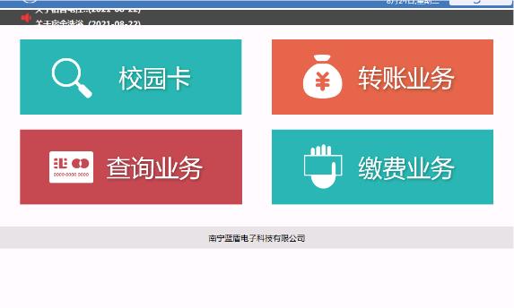 2021级新生默认查询密码及消费密码为身份证号后六位(最后一位为X的,去掉X);