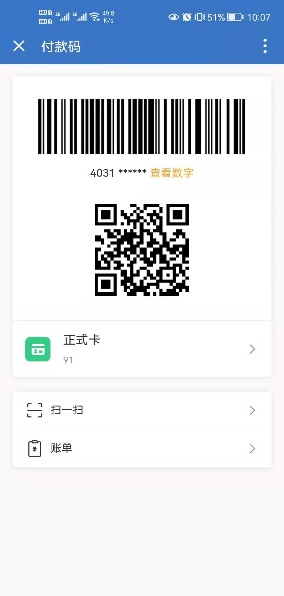 2)支持出示“企业微信—A-一卡通—付款码”消费(手机需联网,产生流量);