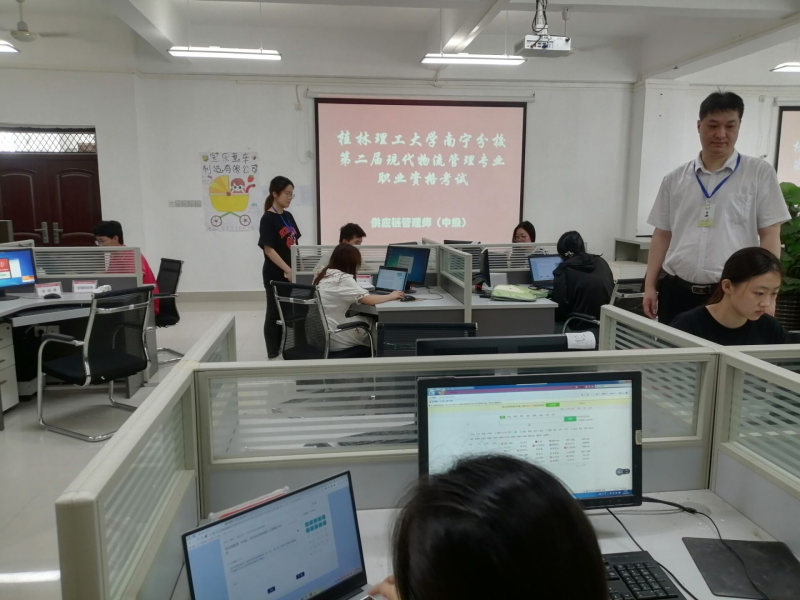 5月30日,现代物流管理专业供应链管理(中级)职业技能等级(选考)考试在实训楼B座A402教室举行。考试由经济与管理学院物流教研室和培训评价组织CEA中商学会教育培训分会(负责支持考证课程的培训考证工作)共同实施,现代物流管理专业2022级14名学生参加了本次考试,教研室具备广西GXOSTA技能人才评价考评员资格负责巡视查看考试组织及实施情况。