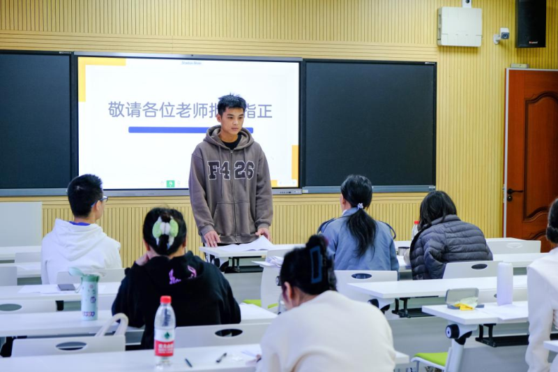 本次答辩共设8个答辩小组,首先由答辩秘书介绍到场的答辩教师、答辩过程中的注意事项,接着答辩秘书收集各组成员答辩资料。答辩环节分为自述选题、答辩评委点评、回答问题、提出修改建议四个环节进行。在答辩现场,学生以PPT演示、论文阐述等形式陈述毕业论文各项内容,答辩评委通过查看论文和听取汇报详细了解学生毕业论文工作的开展及完成情况,就学位论文选题意义、专业能力、逻辑结构、量化分析、写作规范等方面对论文中存在的问题和不足之处进行详细点评,有针对性地提出修改意见,并对学生论文的出彩部分提出赞扬。整个答辩现场师生互动充分,过程井然有序。