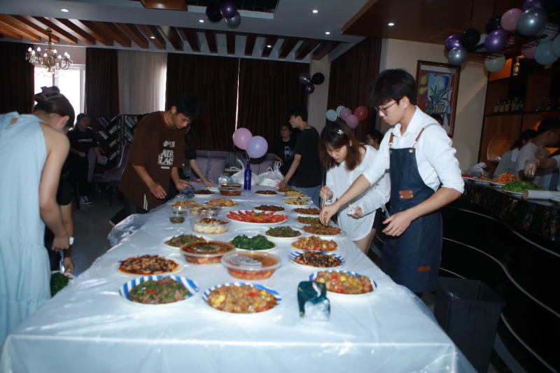 6月26日-7月6日,2021级酒店管理与数字化运营专业开展为期2周的酒店活动策划实训。实训开始时,学生从指导教师提供的四项酒店活动策划项目中选取了毕业聚餐项目,为本班级进行毕业聚餐活动总体策划,运用两年所学的专业知识、技能,对活动进行整体策划、分组实施,主要内容有食品采购、饮品调制、甜品制作、活动场地布置、宴会桌型布局、食品摆盘、晚会流程等,最后呈现了一场青春洋溢的毕业盛宴,提交了一份满分的毕业答卷。
