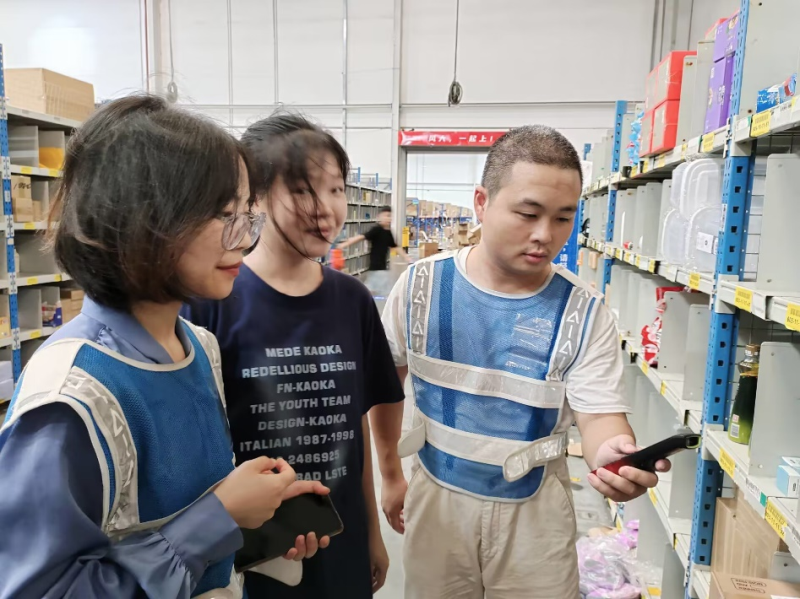 在新生带着憧憬和梦想来到分校报到的同时,现代物流管理专业的同学们也踏上了跟岗实习之旅。作为首届阿里菜鸟数智商学院教学模式培养下的现代物流管理专业大三年级学生,物流21-1班39名学生已于开学同步就位于菜鸟惠阳猫超仓、东莞清溪仓及东莞麻涌优选A仓,开始从事现代物流管理相关岗位工作。为检验学生实习效果,进一步了解实习生工作和生活状况, 9月21日至22日,现代物流管理教研室主任王大昕,带队教研室张玲、文皓程老师,在分校菜鸟驿站运营总监刘伟带领下,对上述三个菜鸟智慧仓进行走访调研。