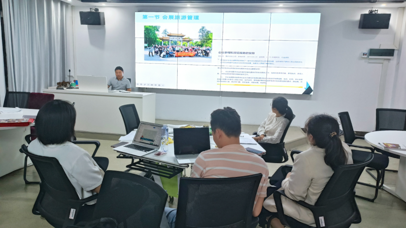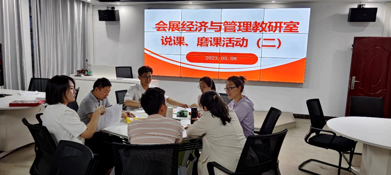 为持续深入推进本科教育教学审核评估工作,持续提升教师教学质量和教学水平,充分做好本学期后阶段授课准备工作,2023年5月8日,会展经济与管理教研室在2103组织开展集体说课、磨课活动。本次活动由教研室负责人罗洁老师主持,陈聪、索玮聪、许克强、张强四位教师分别就备课内容进行说课,其余参会教师进行评课。