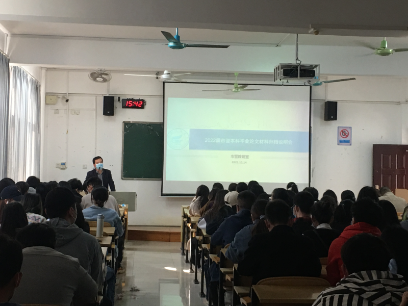 2021年12月14日,市营教研室在2305召开2018级学生毕业论文归档材料说明会,本次会议由教研室主任李鹏敬老师主持,相关指导老师、2018级市场营销专业全体学生参加。