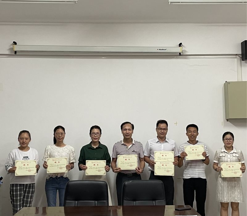 会上,周子平主任为受聘教师颁发聘书;其次,李军辉副主任向受聘教师和新进老师强调在培养期间的基本职责、基本要求,并希望受聘老师在教学、教改、科研等方面给予新老师指导,新老师要自觉、主动指导老师请教学习工作中的各方面。劳国炜副主任强调新老师应多熟悉专业人配方案,了解本专业人才培养目标,在教材选取是也要紧密围绕人才培养目标,选择专业前沿的教材。